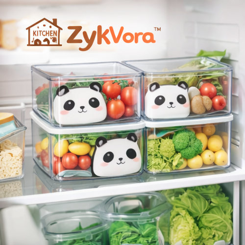 ZykVora™ Cute Panda Stackable Pantry Storage Bins – Kitchen Organizer Containers for Fruits, Snacks & Refrigerator Storage